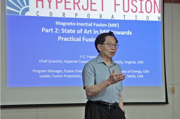 5月13日至5月19日,前美国能源部聚变能源科学办公室项目主管、Mashall空间飞行中心聚变推进负责人、现HyperJet聚变公司联合创始人和首席科学家Y.C. Francis Thio教授应邀访问我校电气与电子工程学院。访问期间,作为等离子体套筒压缩磁惯性聚变(PJMIF)概念的提出人,分别在电气学院西九楼、聚变所做了3次讲座,系统地介绍了PJMIF的原理、前景和关键技术问题,同时还介绍了其在等离子体推进、聚变推进等方面的应用前景,与师生进行了广泛交流。