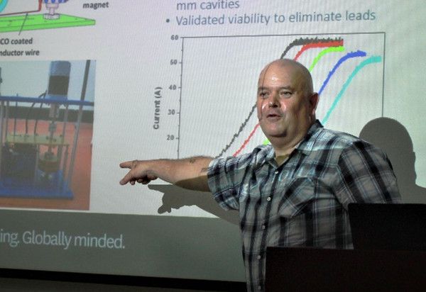 所长Nick Long教授介绍了位于澳大利亚维多利亚市的罗宾逊实验室,回顾了此前来访我院超导中心的经历,对我院超导中心的取得的科研成就和中心科研环境给予了高度评价,提出了进行双方交流合作的愿景。副所长Rod Badcock教授做了关于“Flux Pump Exciters for HTS Machines”(用于高温超导电机的磁通泵激励器)的报告,Rod教授向大家讲解了实验室自主研发的超导电机用磁通泵,还重点介绍了超导电机的全超导启动电路以及整个系统的集成。