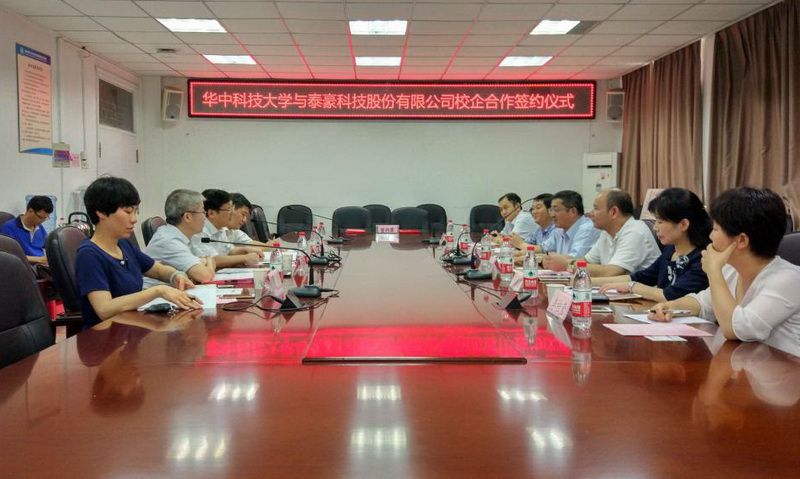 7月3日,泰豪科技股份有限公司与华中科技大学捐赠设立“泰豪之星”十佳奖学金暨校企合作签约仪式在西九楼204举行。泰豪军工集团总裁曾智杰、江西清华泰豪三波电机有限公司总经理陈海斌,华中科技大学教育发展基金会秘书长李志强、电气与电子工程学院院长文劲宇等出席了签约仪式。